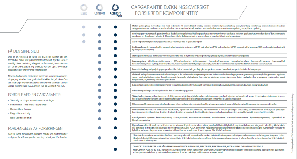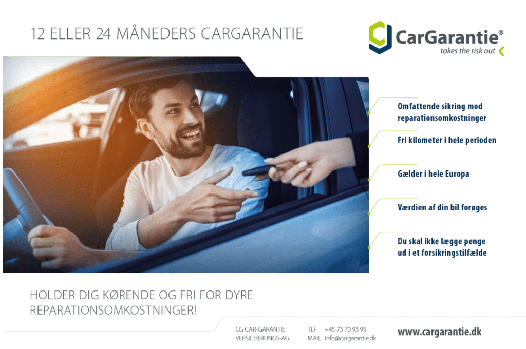 Udvidet og forlænget garanti tilbydes af CarGarantie igennem 100% Autotjek. Du kan læse mere om det her